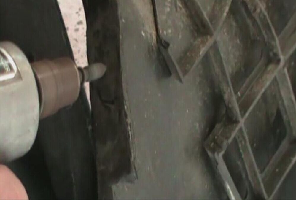 步驟6:把烙鐵按壓在加固網(wǎng)上加熱,并保持一定時(shí)間,使熔化的塑料將無銹加固網(wǎng)完全覆蓋,如圖1-6所示。注意要使覆蓋在無銹加固網(wǎng)周邊和折邊的熔膠具有一定厚度。